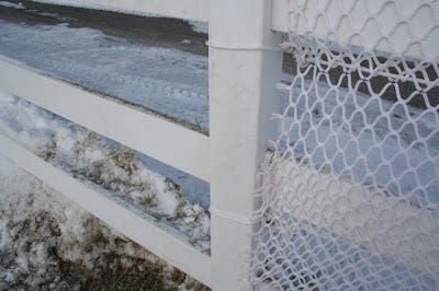 Nate supervised the entire operation to make sure it was to his specifications. Can't tell if he's happy with the progress or maybe this is just him smirking at the involuntary snow angel I made while attempting to climb over the snow bank next to the fence - and yes, there are pictures of that too (thanks a lot mom! ;-) but I won't be posting them here!